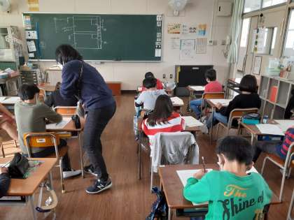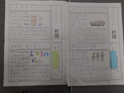 3年生は、先日社会科で商店街を見学させていただきました。2組では見学して学んだことを新聞にまとめました。インタビューして知ったことや見学して気がついたことを、新聞風に書いていました。お店で働いている方々の工夫を表すようにがんばっているようです。