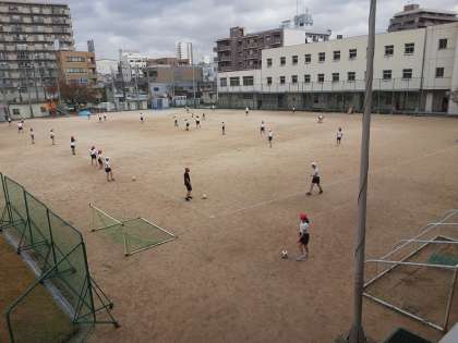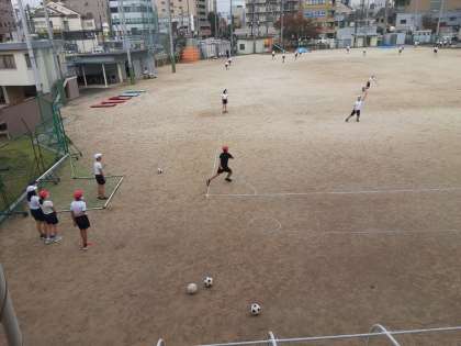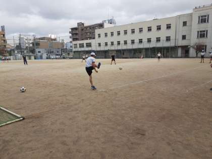 6年生は体育科で「キックベースボール」に取り組んでいます。前半はペアでボールを蹴る練習をしていました。後半はチームに分かれて実践の形で練習していました。「蹴ったボールが前の線を越えなかったときは……。」「フライの時(ゴロの時)1塁ランナーは2塁へ走るべきか留まるべきか……。」ルールは難しいですが、チーム内で教え合いながら練習を進めていました。