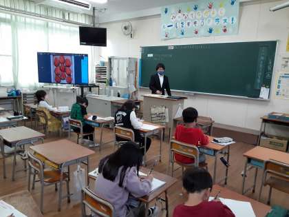 11月21日(土)は、学習参観・作品展です。2時限目は1〜3年生の学習参観です。1年生は、国語科「ことばであそぼう」の単元から、「だじゃれを つくろう」の学習の様子を観ていただきました。入学してから、1年生なりに言葉の世界が広がっています。知っている言葉の中から似ている言葉を考えてダジャレをつくります。遊びながら。子どもたちの言葉が増えていきます。