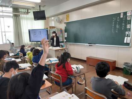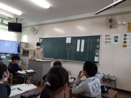 3年生は国語科で「漢字の読み方」について学習しました。これまでも新出漢字を学習する際に、音読みはカタカナで、訓読みはひらがなで書き表していました。音読みと訓読みの違いについて、この単元で学びます。これから新出漢字を学習するときには、音読み・訓読みを意識してほしいです。児童は、知っている熟語をがんばって発表していました。