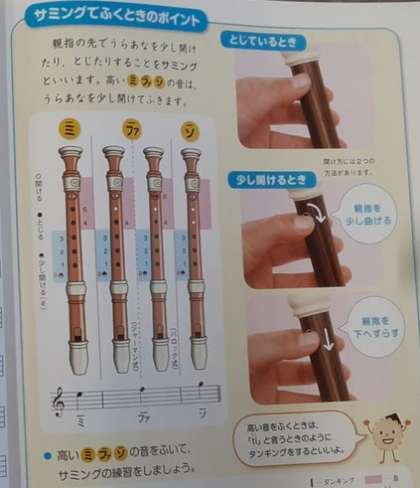 4年生では音楽科で「オーラ リー」をリコーダーで演奏していました。2つのパートに別れるので、お互いの音をよく聞きながら演奏しなくてはいけません。また、高い「ミ」「ファ」「ソ」の音をリコーダーで吹きます。サミング(親指の先で裏穴を少し開ける)しながら、息の使い方に気をつけて吹かなければいけません。それでも、子どもたちはお互いに合わせようと努めていました。