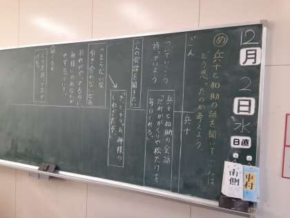 ごんぎつね 公開日 2020/12/02 更新日 2020/12/02 お知らせ 4年生では国語科で「ごんぎつね」を学習しています。本時では、兵十と加助の話を聞いたごんの気もちについて考えました。ごんが償いのために、毎日栗を兵十に届けていましたが、兵十と加助は「神様のおかげ」と思っています。ごんの「気づいてほしい」「引き合いに合わない」気もちは、子どもたちにも共感できたようです。人に親切にするのに、見返りが返ってくるとは限らないという経験、子どもたちにもあるようです。 いいね(0)