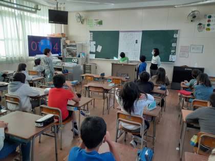 4年生では社会科で、昔から伝わる行事や祭りについて学習してきました。児童はグループで祭りについて調べ、新聞にまとめました。今日はその発表会をしていました。インターネットや図書を駆使してよく調べていましたが、お友だちから出される新たな質問には困っているようでした。