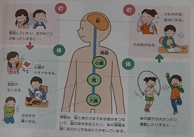 心と体の関り 公開日 2020/12/08 更新日 2020/12/08 お知らせ 5年生は保健で「心と体の関り」の学習をしていました。「恥ずかしいとき」「おなかが空いたとき」顔が赤くなったり、グーと音がしたり、体は正直に反応します。このように、心と体は互いに深く影響し合っていることを学びました。睡眠不足のときイライラして集中できなくなることや、怒っているときには人や物に当たってしまうことが出来るだけ抑えられるようになれば、それは心身ともに成長して大人へ近づいている証拠だと思います。 いいね(0)
