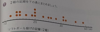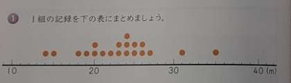 資料の特徴を調べよう 公開日 2020/12/08 更新日 2020/12/08 お知らせ 6年生では算数科で「資料の特徴を調べよう」を学習しています。資料の特徴をつかむ方法の一つとして、平均を計算することはすでに学んでいます。この単元では、平均だけではわかりにくい、数値のちらばりのようすについて学んでいきます。平均が近い2学級でソフトボール投げの結果を比べましたが、一方は個人差がとても大きく、特徴は違うようです。 いいね(0)
