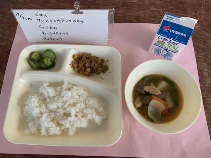 12月9日(水)の給食 公開日 2020/12/09 更新日 2020/12/09 お知らせ 12月9日(水)の給食は、ごはん・牛乳・鶏肉と野菜の煮もの・じゃこ豆・あっさりきゅうりです。じゃこ豆は、でん粉をまぶした大豆を油で揚げ、砂糖やこいくちしょうゆを合わせて煮つめてから、ちりめんじゃこをからませ、いりごまをふって作ります。よく噛んで食べられる人気の献立です。 いいね(0)