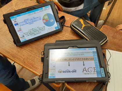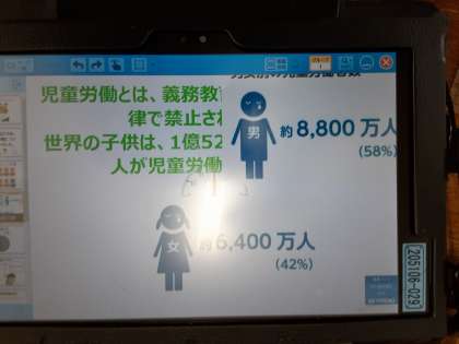 6年生では国語科で「世界に目を向けて意見を書こう」に取り組んでいました。本時では、タブレットを使って情報を集めメモをしていました。テーマは人権問題のようです。資料をパワーポイントの画面にそのまま貼り付けて終わりではなく、より見やすいようにわかりやすいように加工していることがわかりました。今回も素晴らしいプレゼンの大会が見られそうです。