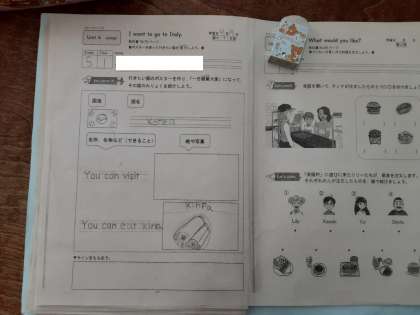 5年生では英語科で「I want to go to Italy」に取り組んでいました。行きたい国の一日親善大使になって、その国のポスターを作り魅力を紹介します。「You can visit」「You can see」を言葉だけではなく、絵も使って上手に表していました。