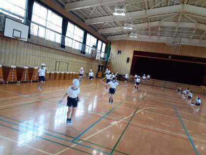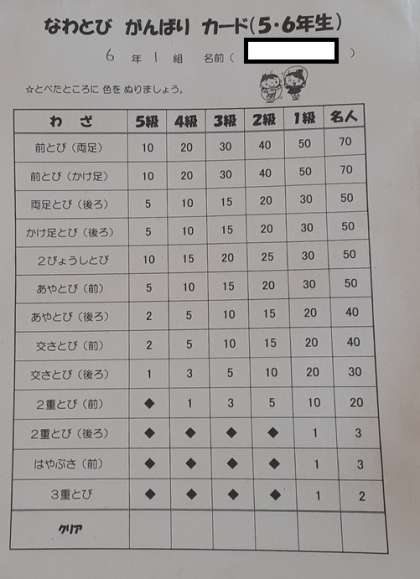 そのあと、「三重跳び」と「はやぶさ(あや二重跳び)」にチャレンジしていました。どちらも高度ですが、三重跳びの方が縄跳びカードの級が上であるところを見ると、三重跳びの方が難易度は高いようです。はやぶさを跳べる児童がいました。驚きの技でした。