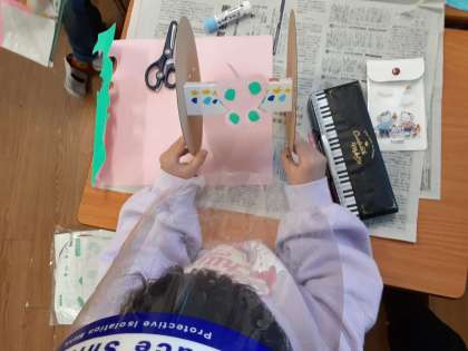 かみざら コロコロ 公開日 2020/12/16 更新日 2020/12/16 お知らせ 1年生は図画工作科で「かみざら コロコロ」に取り組んでいます。紙皿2枚に色紙を貼ったりマジックで塗ったりして模様をつけます。その2枚の紙皿の間を芯でつなぎます。芯のつなぎ方によって、紙皿がゆらゆらころがっていきます。子どもたちには、このころがり方が不思議なようで、できあがりを楽しみにして紙皿の飾りを作っていました。 いいね(0)
