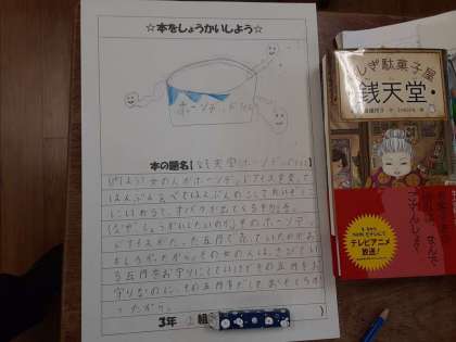 本をしょうかいしよう 公開日 2020/12/16 更新日 2020/12/16 お知らせ 3年生では国語科で「本を紹介しよう」に取り組んでいます。2組では、紹介する文章を書いていました。「めあて:友だちに本をしょうかいしよう」というメモには、「題名」「本の内容」「紹介する理由」について書いています。そのメモを見ながら、紹介する文章をしっかり書いていました。 いいね(0)