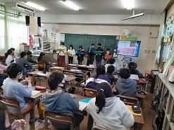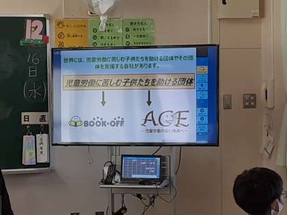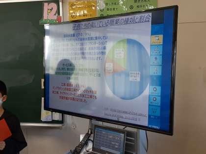 6年生では国語科で「世界に目を向けて意見文を書こう」に取り組んできました。プレゼンができあがり、グループごとに発表しています。「文字が小さい」「出典を示した方がいい」「同じ内容のグラフが2種類あるので、どちらか一つでいい」など手厳しい指摘もありました。一方で、よくまとめられていたところについては、しっかり認めてくれていました。