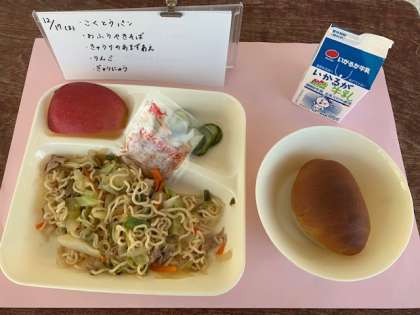 12月17日(木)の給食 公開日 2020/12/17 更新日 2020/12/17 お知らせ 12月17日(木)の給食は、黒糖パン・牛乳・和風焼きそば・きゅうりの甘酢あえ・りんごです。和風焼きそばは、うすくちしょうゆ・こいくちしょうゆで味つけしています。かつおぶしをかけて、和風の味わいになっています。 いいね(0)