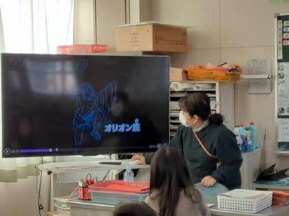 冬の星座 公開日 2020/12/17 更新日 2020/12/17 お知らせ 4年生は理科で「冬の夜空」の学習をしています。冬の星座カシオペア座は時間が経つにつれてどうなるのか予想しました。夏の夜空で調べたことを思い出していました。 予想があっているのか検証しなければいけません。もし夜中に空を観察する宿題を出しても、都会のネオンが明るすぎて、あまり観察できません。ビデオで予想があっているか確認していました。冬の大三角、しっかり覚えてほしいです。 いいね(0)