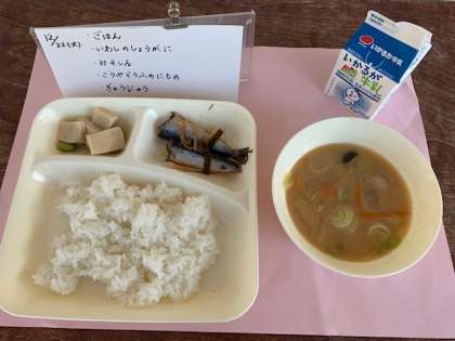 これまでの給食では、フライ・煮魚・つみれ汁にしていましたが、本日は、しょうが煮にしています。