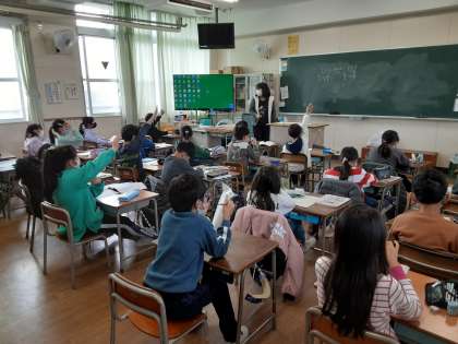 3年2組では、1月に実施される経年調査に向けて、間違いやすい問題に取り組んでいました。「594×6」と「594×7」の答えの違いについて考えます。答えは「594」であることはわかるのですが、経年調査では、なぜ答えの違いが594になるのかの説明を問われることがあります。考えを書き表せるようにがんばってほしいです。