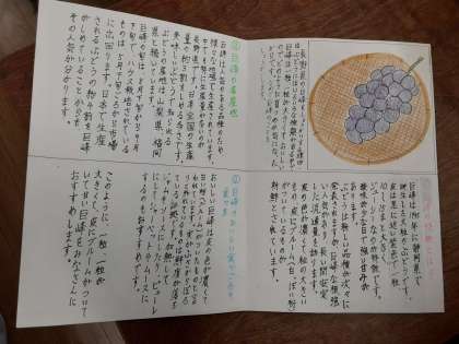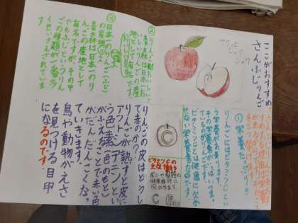 4年生では冬休みの宿題で、地方の特産品や名物について調べてリーフレットを作る課題が出ていました。できれば、田舎であったり親戚が住んでいたり、自分とつながりのある土地のものを調べるようでした。農作物が多いようでしたが、中にはたこ焼きのように、大阪の名物を調べる児童もいました。近くの児童と交換してお互いに見せ合って、お友だちのよくできているところを探していました。