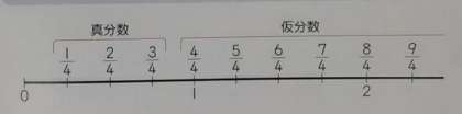 また、「7分の4」は「1」といくつをあわせた数になるのかを数直線で考え、「帯分数」についても学びました。「仮分数」と「帯分数」を場面によって使い分けられるように学習していきます。