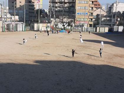1年生は生活科で「ぐにゃぐにゃだこ」を作りました。本時では、運動場で凧あげをしていました。昨日まで厳しい寒さでしたが、今日は暖かく動きやすい気温です。その分風がなく、凧を揚げるのは苦労するようです。児童は、思いを込めて一所懸命走っていました。