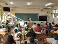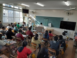 その後、児童が四季の中で「いとをかし」と感じたことを詩に表しみんなの前で発表していました。聞いている児童も、お友だちの詩の中で、よかったところを見つけて発表していました。「春は桜。……」「秋は紅葉。……」「冬はクリスマス。……。」子どもたちなりの季節の感じ方、自分の言葉で表現していました。