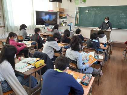 4年生では理科で「もののあたたまりかた」を学習しています。金属や水、空気がどのように温まるのかを調べていきます。今はグループで実際に実験をすることができないので、本やビデオを使っての学習になってしまいます。