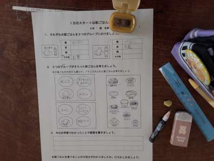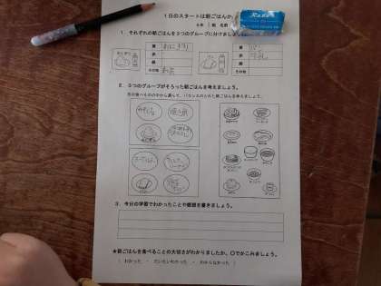 プリント学習の上では、バランスの良い食事を考えられたようです。家でも実践してほしいと思います。