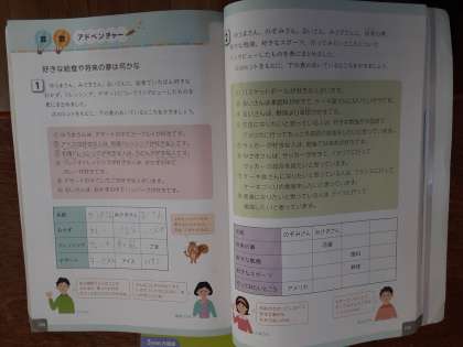6年生では算数科で「算数アドベンチャー」の問題に取り組んでいました。「将来の夢」「好きな勉強」「好きなスポーツ」「行ってみたいところ」を4人にインタビューした内容から、表の空白のところを推理します。うまく表を完成できるでしょうか。