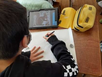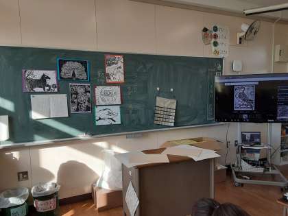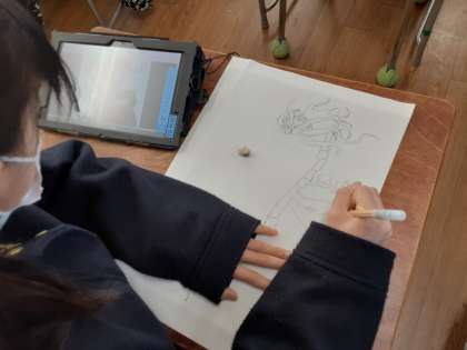 版画1 公開日 2021/01/21 更新日 2021/01/21 お知らせ 5年生では図画工作科で版画の下描きをしていました。テーマは動物のようです。白と黒で表すので、毛並みをどう表現するかが難しく、技がいるかもしれません。タブレットで調べて、気に入って図柄を参考にして書いていました。 いいね(0)