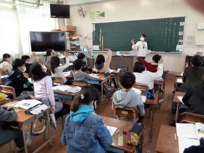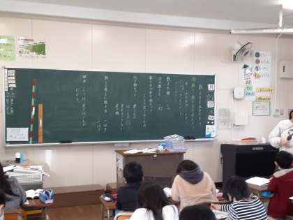 4年生では国語科で「ものの数え方を考えよう」を学習しています。本時では、ある物の数え方を学級で新たに話し合って考えていました。物を何にするのか「マジックリン」「ローストビーフ」なども候補にあがりましたが、多数決で「靴」に決まりました。