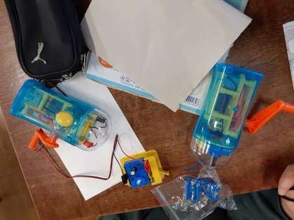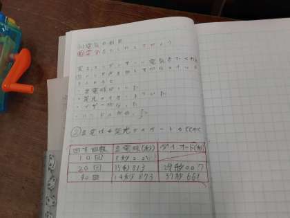 コンデンサーの働き 公開日 2021/01/27 更新日 2021/01/27 お知らせ 6年生は理科で「発電と電気の利用」を学習しています。本時では、コンデンサーには電気を蓄える働きがあることを学び、ハンドルの回転数によって豆電球や発光ダイオードをどれだけの時間点けられるのか実験していました。ハンドルを回すのが結構大変そうでしたが、たくさん回すほど長い時間明かりが点くので、コンデンサーが蓄えられる電気量の大きさに気づいたようです。手が疲れるほどの運動量は、結構なエネルギーのようです。 いいね(0)