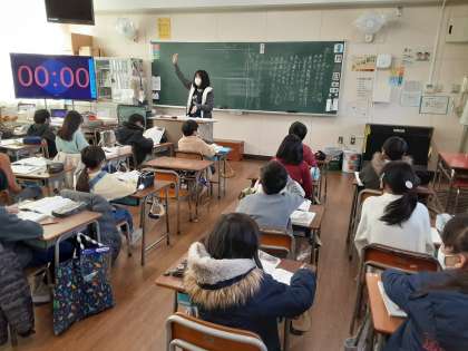 3年生では国語科で「人をつつむ形−世界の家めぐり」を学習しています。2組ではモンゴルの家のつくりについてまとめた後、チュニジアの家のつくりについて読み進めていました。冬の寒さが厳しいモンゴルの家と違い、気温の差が激しいチュニジアの家は、寒さにも暑さにも工夫が必要です。図を参考にしながら、読みとっていました。ヒツジやヤギの部屋があるのに驚いたようです。