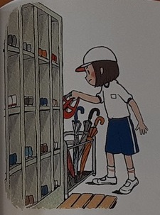 2年2組では道徳科で「ある 日の くつばこで」を学習していました。体育授業の前に、まり子さんととしおさんが教室へ忘れ物を取りに行こうとしていると、かずみさんが友だちの靴を隠しているところを見てしまいました。「だれにも言わないで」と言われ、体育の授業の間、気になって心が曇っていました。まりこさんは「正しいことができる人がいちばん勇気のある人」という母の言葉を思いだして、「勇気を出そう」という決心しました。