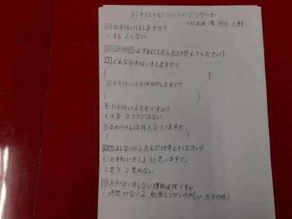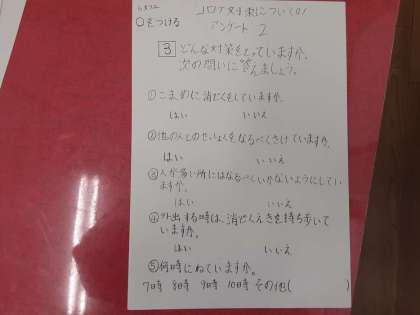 テーマは「お手伝いについて」「コロナ対策について」「好き嫌いについて」などです。結果が楽しみです。