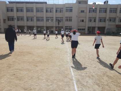 負けないで 公開日 2021/02/09 更新日 2021/02/09 お知らせ 6年生は体育科で持久走に取り組んでいました。10周走るのですが、最初の3周は全員列に並んで他の人に合わせて走っていました。3周目以降、自分のペースで走っていました。10周走り終わったところで、ゆっくり歩いて呼吸を整えます。 スタート地点では「負けないで」の音楽が流れていました。負けない相手は、友だちではなく、自分でしょう。周回するたびにこの音楽が聞こえてきて、元気をもらいながらがんばって走っていました。 いいね(0)