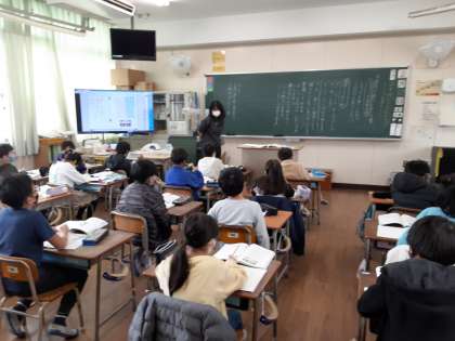 3年生では国語科で「外国のことをしょうかいしよう」を学習しています。2組では、紹介するときに、話す内容がより伝わる工夫について考えていました。「この資料を見てください。」「次に〜について〇〇さんが発表します。」のような言葉を使うと、聞き手にわかりやすくなります。「〜について知っていますか?」「〇〇さんから聞いたことですが……。」のように話すと、聞き手の興味を引くようです。実りが多い発表会にしてほしいと思います。