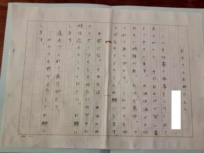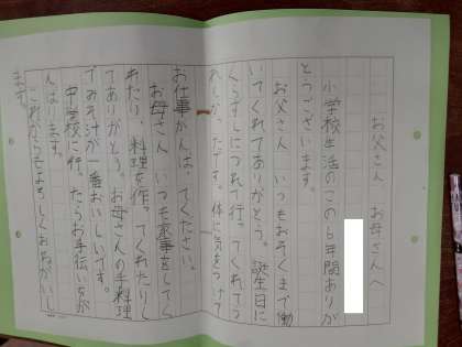 ありがとう・感謝の言葉2 公開日 2021/02/12 更新日 2021/02/12 お知らせ 写真を撮らせてもらうようにお願いすると、恥ずかしいと断られた児童もいました。気持ちはわかります。そんな中で、快く撮らせてくれた児童もいました。ありがとうございました。 感謝の気もちを、素直に表現しています。すばらしい文章なのでぜひ紹介させていただきます。 いいね(0)