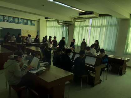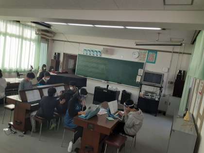 6年生も音楽科で、卒業生を送る会で、在校生にお返しする曲を練習していました。「木製」の曲を合奏するようです。卒業生から在校生への演奏もリモートになります。