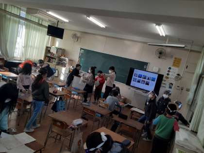 3年1組では総合的な学習の時間で「大阪について調べよう」に取り組んでいました。本時では、ついに発表のときが来ました。初めに少し時間を取ってグループごとに発表の練習をしていました。インターネットから画像を取り込んで大型テレビに映しながら説明しています。大阪の「動物園・大阪城・ハルカス・交通・海遊館・冬・USJ・夏」の発表があるようです。