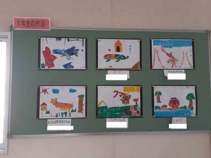 1年生の版画が掲示されていました。