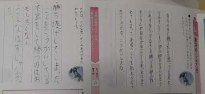 新次が不正をしたいと思う気もちと正しい気もちの葛藤を考えさせたかったのですが、ほとんどの児童は、不正を働くことを夢にも思いつかなかったようです。