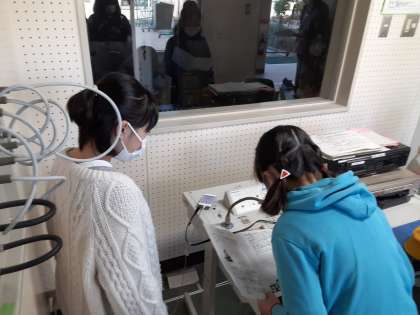 第1ヒント「透明です」第2ヒント「密になるときに使います」第3ヒント「頭につけるものです」今年度つける機会が多かった道具「フェイスシールド」でした。ほかにも「定規」「ランドセル」などがクイズになって登場しました。