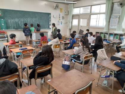3年1組では学級活動の時間に「きらり・パーティ」で行う活動について全体で話し合っていました。司会の児童が前で話し合いを進めてくれていました。黒板には、候補に挙がった活動名が書き連なっていました。多様な種類の活動があることに驚いてしまいました。「歌」イントロクイズ」「ばくだんゲーム」に決まったようです。