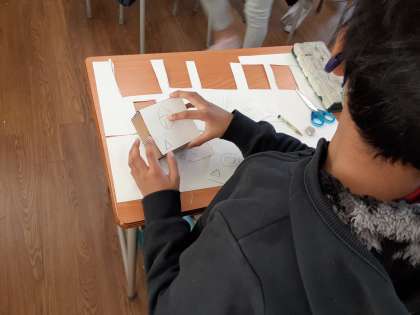 はこの 形を しらべよう 公開日 2021/02/22 更新日 2021/02/22 お知らせ 2年生は算数科で「はこの 形を しらべよう」を学習しています。前時に箱のすべての面の形を画用紙に写し取りました。本時では、その面を切り取って箱を作り直していました。 その際に、同じ形の面には印をつけているので、箱の中で、どの面とどの面が同じ形なのかがわかります。箱の面の数や特徴について気づいていきました。 いいね(0)
