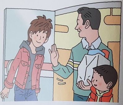 3年2組では道徳科で「れいぎ正しい人」を学習していました。「礼儀正しい人」とは「あいさつや正しい言葉遣いができる人」と思いがちですが、ここでは「人間関係や社会生活の秩序を維持するために人が守るべき行動」まで踏み込んで考えます。まさおは、「ドアをもったまま通してくれた人」を「優しい人」と思いました。その後、お父さんから今の人は「礼儀正しい人」だと教えてもらい、自分も1年生に対して見習おうと思いました。