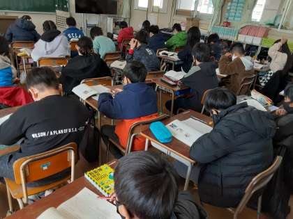 音声で「手塚治虫」の朗読を聴き、ノートに初発の感想を書いていました。書く時間はあまりなかったのですが、それでも治虫の努力する姿勢、夢や希望をもって決してあきらめない強い思いに目を向けて、ノートに書き込んでいる児童が何人もいました。