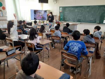 3年生は図画工作科で紙版画に取り組みます。1組では「昔遊びをしている自分」をテーマに作品を作っていきます。