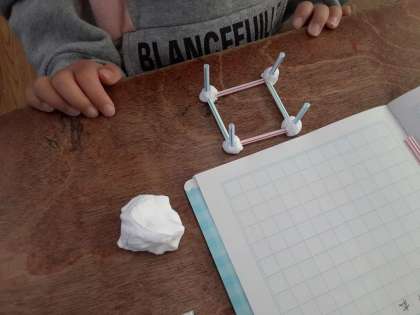 辺(ひご)の長さや数、頂点(粘土玉)の数に気をつけながら作業していました。