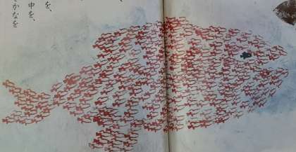 好きな場面を選んだら、作者になったつもりで、スイミーの台詞を詳しく書き加えるようです。第4場面なら感動する台詞、第6場面なら仲間をたたえる台詞でしょうか。