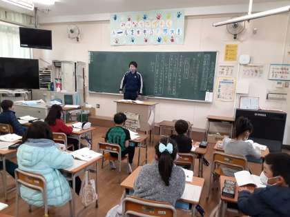 2年生は国語科で「あなの やくわり」について学習しています。2組では、しょうゆさしに、どうして穴が2つ開いているのか説明文を読み取っていました。「しょうゆさしには、あなが2つ、あいているものがある」文章から、「なんのために」・「なぜ」か考えながら読み進めていました。