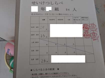 3月3日(水)朝タイムに、健康委員会による「せいけつけんさ」が実施されました。